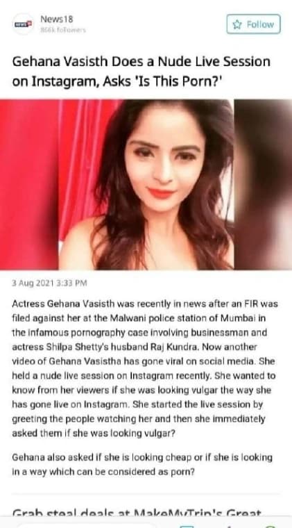 Hot desi actress Gehana Vasisth goes topless live
